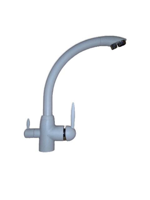 Bateria cu 3 cai alba vintage este solutia ideala pentru a avea apa rece, apa calda si apa filtrata dintr-un singur robinet, fara a mai instala o baterie suplimentara.