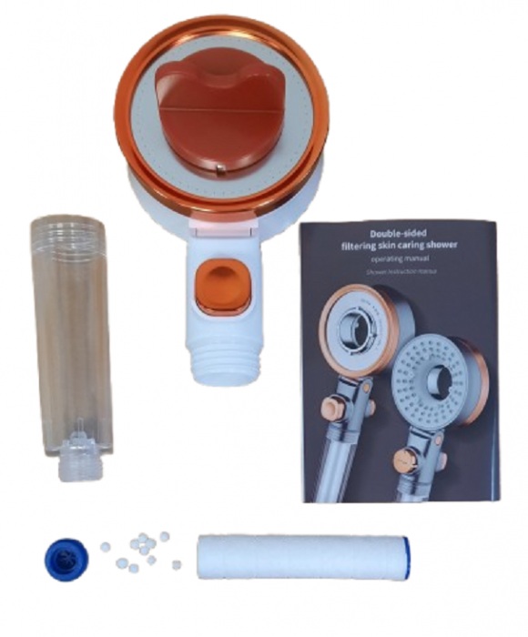 - Pietrele ionice negative alcătuiesc sistemul de filtrare pentru purificarea apei de la duș, eliminarea eficientă a clorului dăunător și a vaporilor săi, reducerea impurităților reziduale din apă.